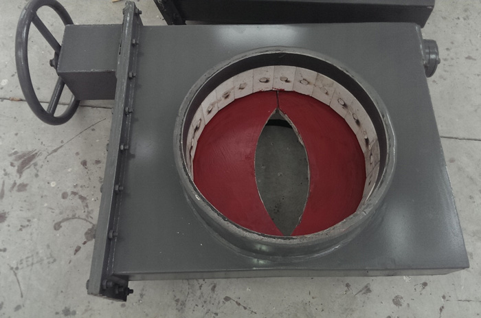 4、左、右兩塊芯板采用稀土耐磨材料鑄造,耐磨性?xún)?yōu)越,密封性 能良好,啟閉靈活,調節性能好,工藝精細、外形美觀(guān)。